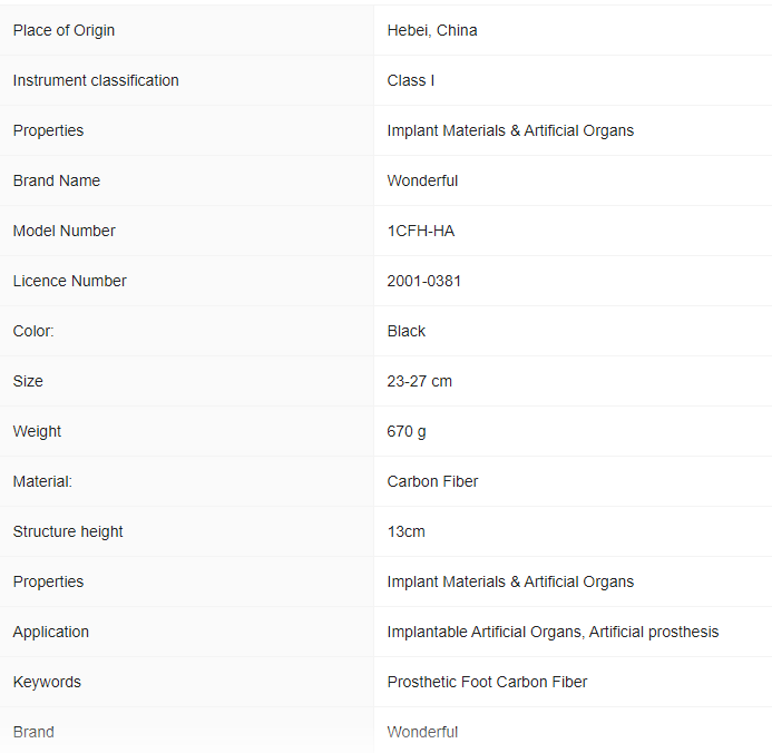 .Business Scope: Artificial limbs, orthopedic devices and related accessories needed by medical rehabilitation institutions. We mainly deal in the sale of lower limb prosthetics, orthopedic appliances and accessories,materials, such as artificial feet, knee joints, locking tube adapters, Dennis Brown splint and cotton stockinet, glass fiber stockinet, etc. And we also sell prosthetic cosmetic products, such as foaming cosmetic cover(AK/BK), decorative socks and so on.